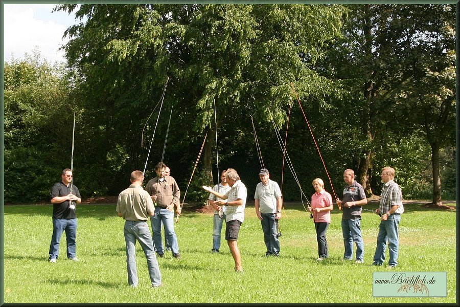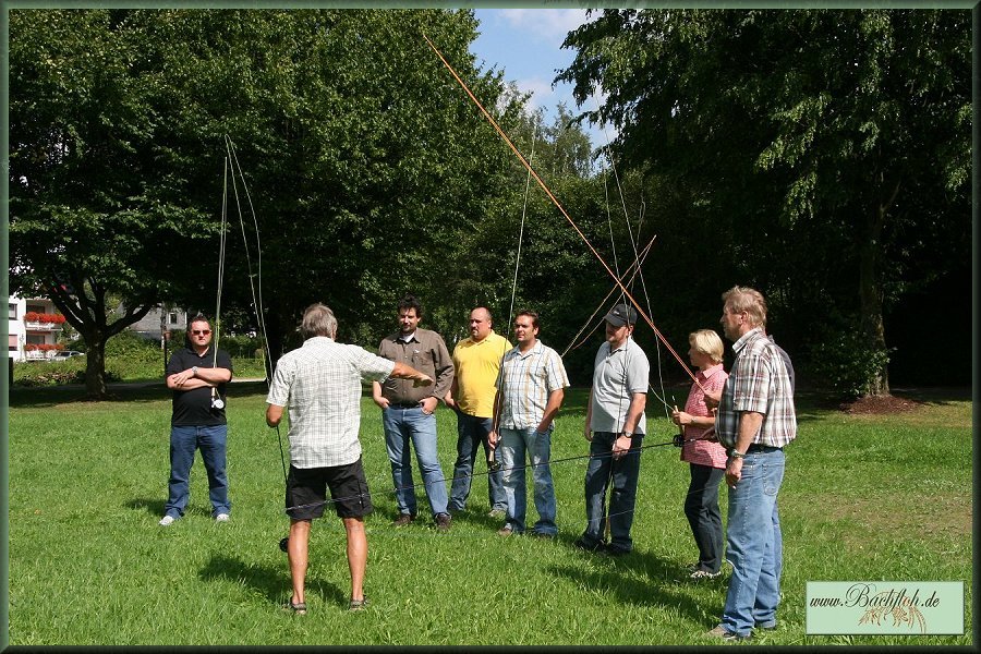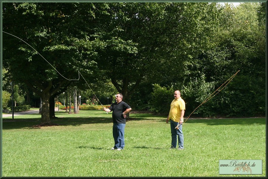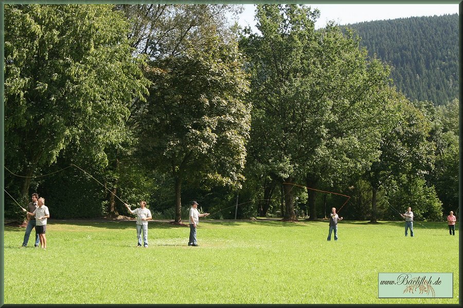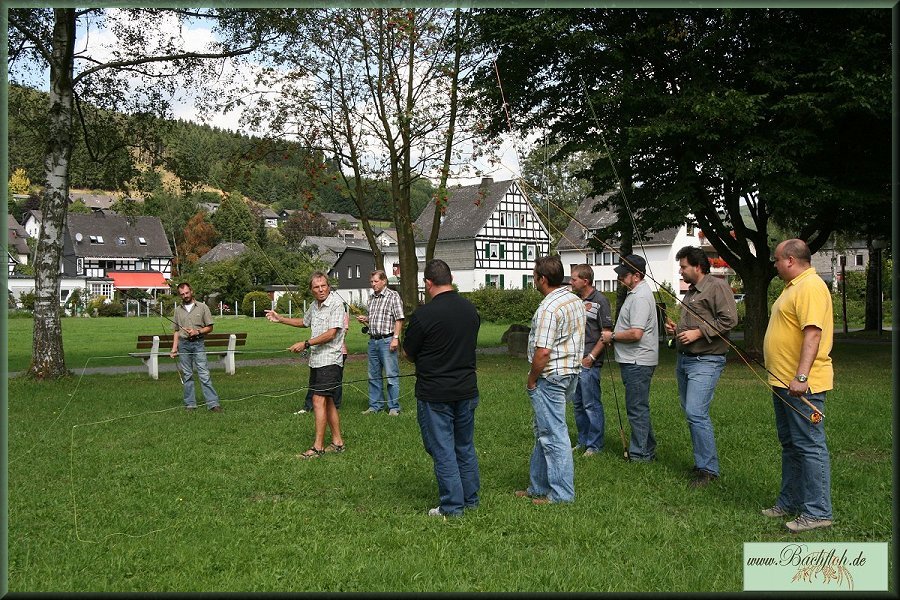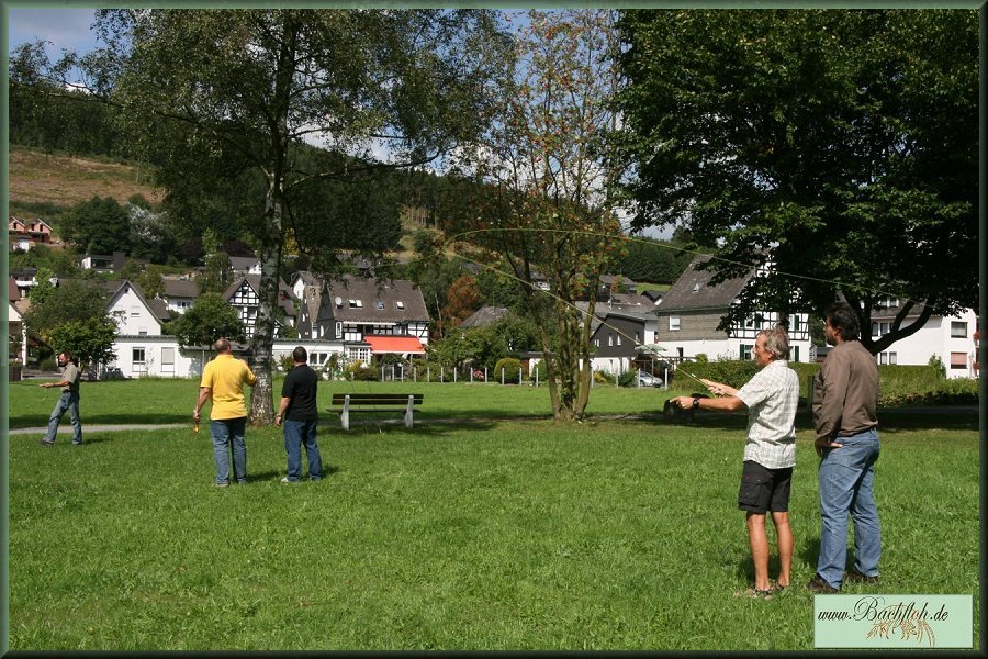 ein Einblick in die Kunst des Fliegenfischens gewährt.Im Kurpark erlernten 8 Kursteilnehmer unter den Blicken vieler neugieriger Kurgäste