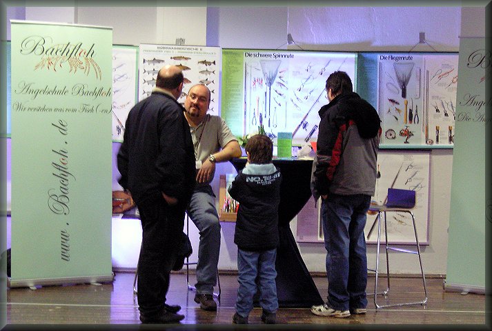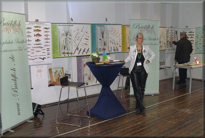 Messestand der Angelschule Bachfloh, Team Bachfloh Petra Wingen
