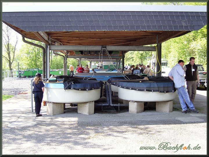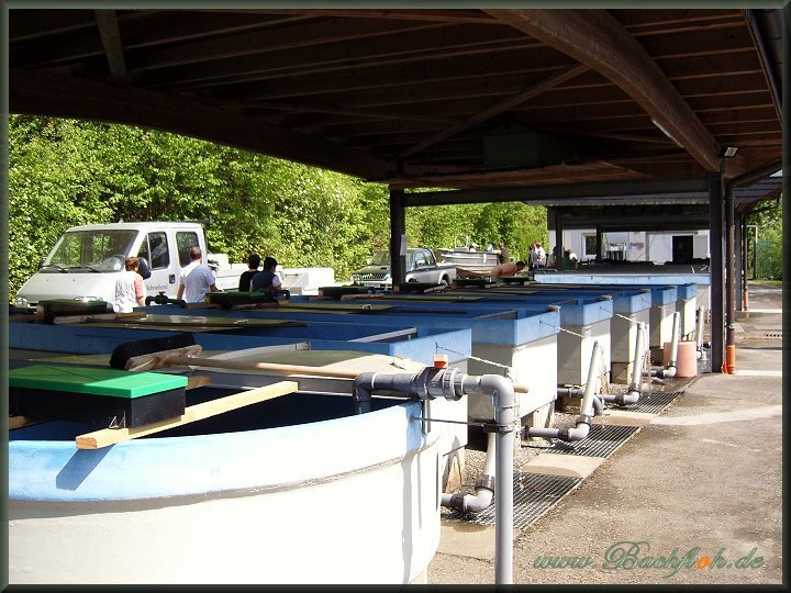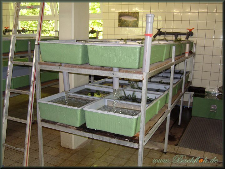 Innenbereich Bruthaus, Aufzuchtbecken, Hechtbrut.